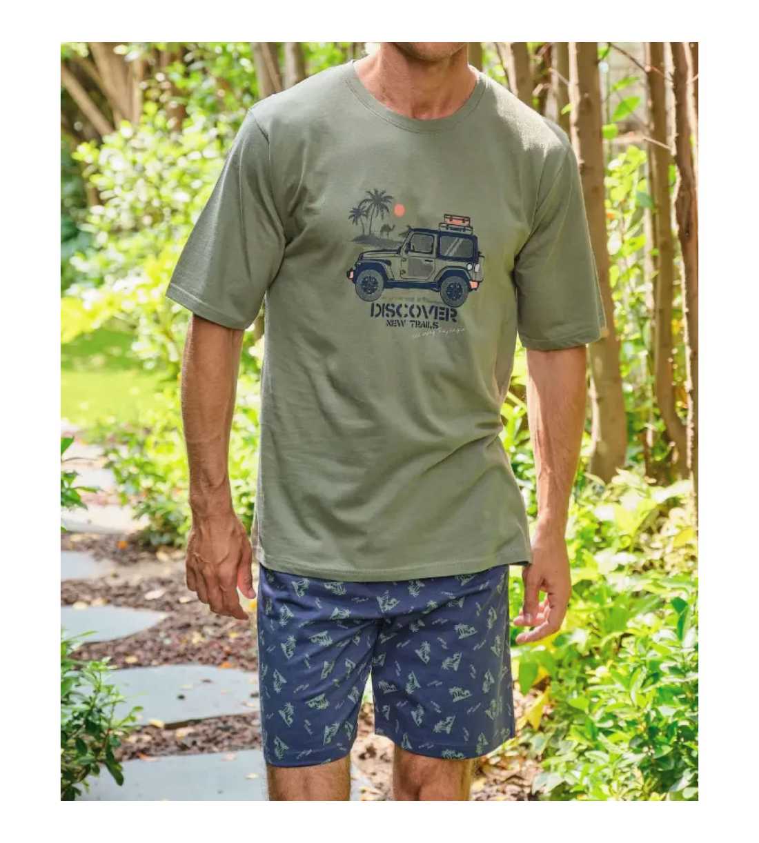 Conjunto de dos piezas compuesto por camiseta de manga corta y pantalón corta.