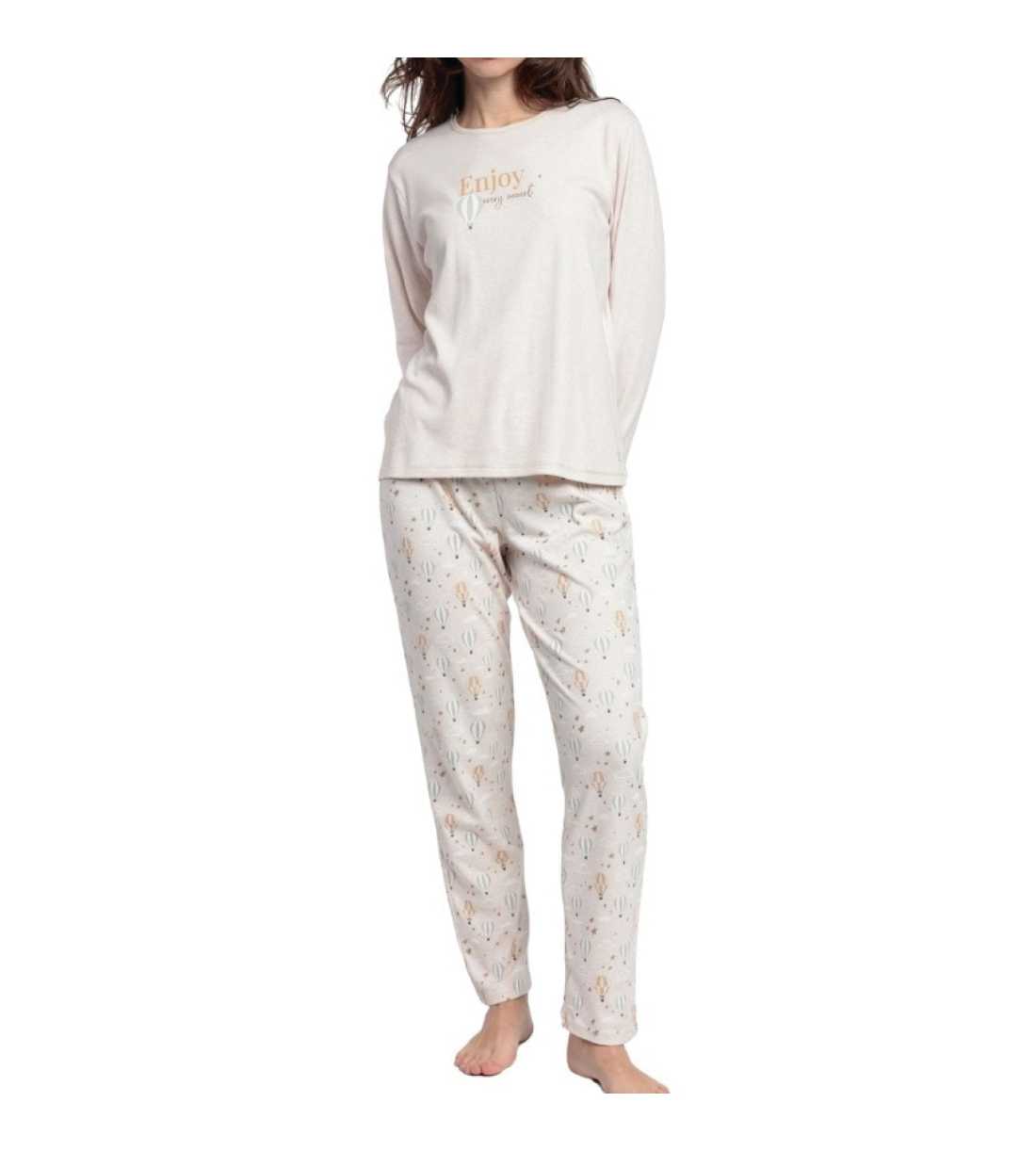 Pijama largo de mujer confeccionado en punto perchado, ideal para los meses fríos.