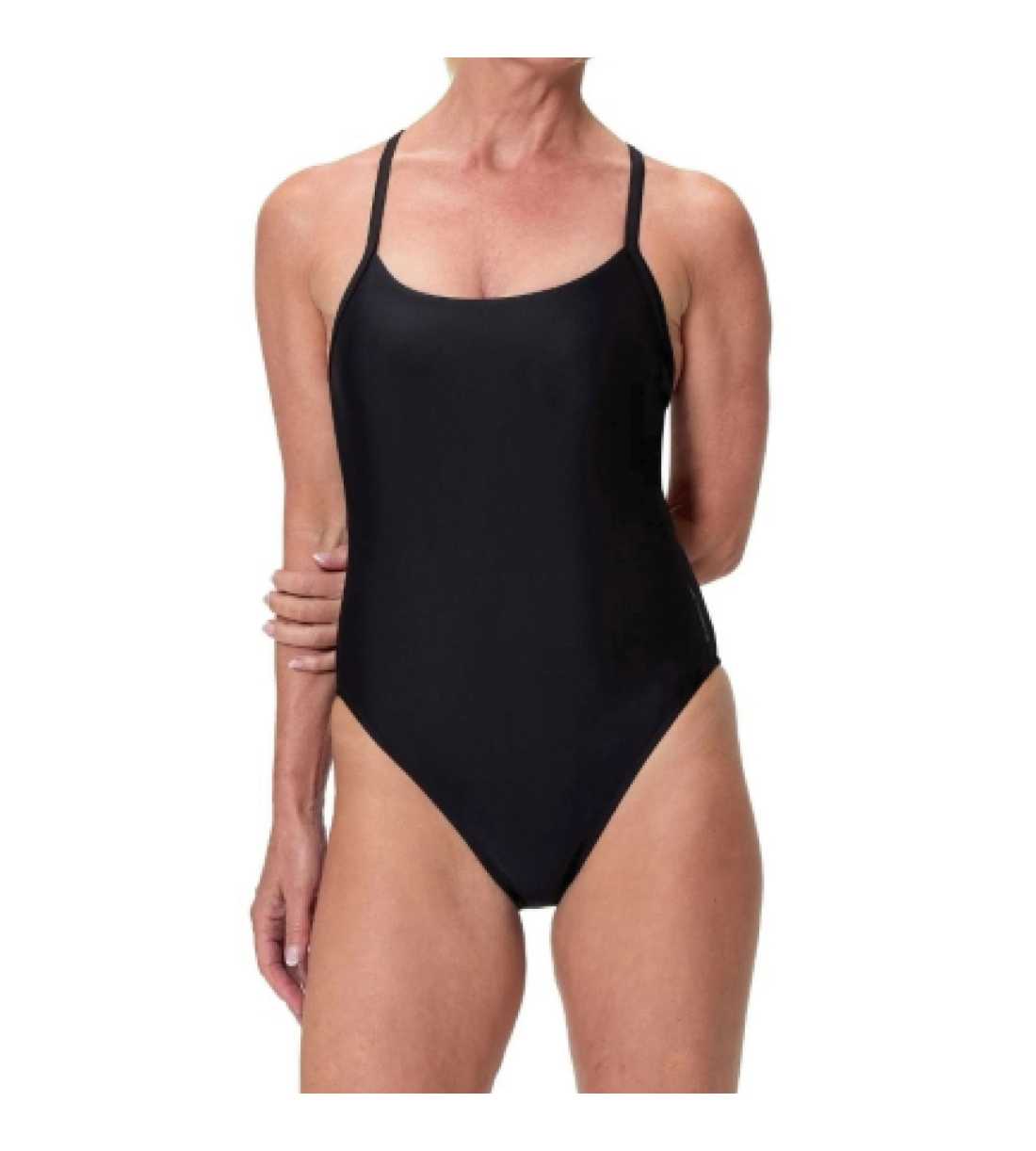 Bañador de natación con diseño Racerback que favorece el movimiento de los hombros y ofrece mayor cobertura en la espalda.