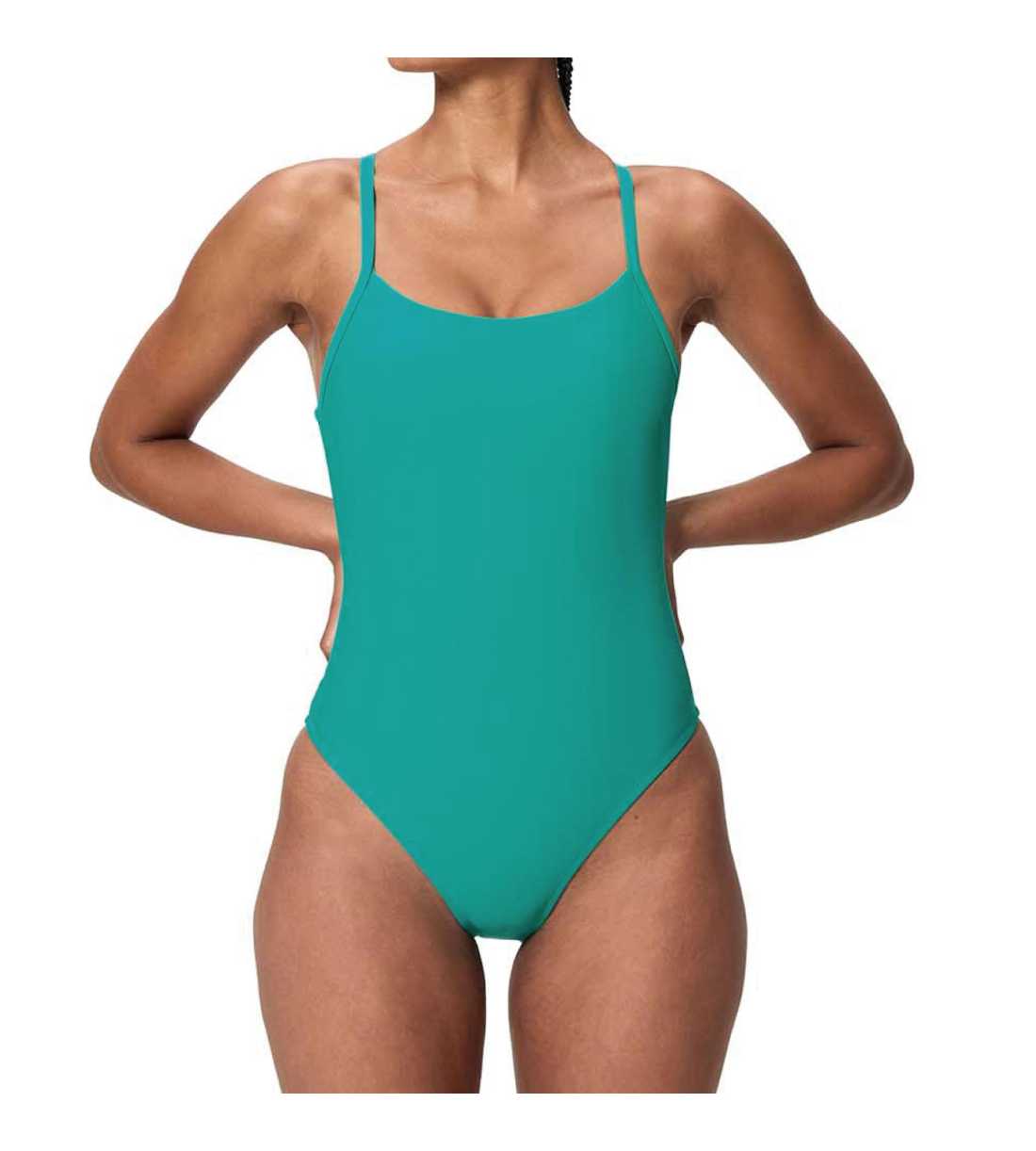 Bañador de natación con diseño Racerback que favorece el movimiento de los hombros y ofrece mayor cobertura en la espalda.