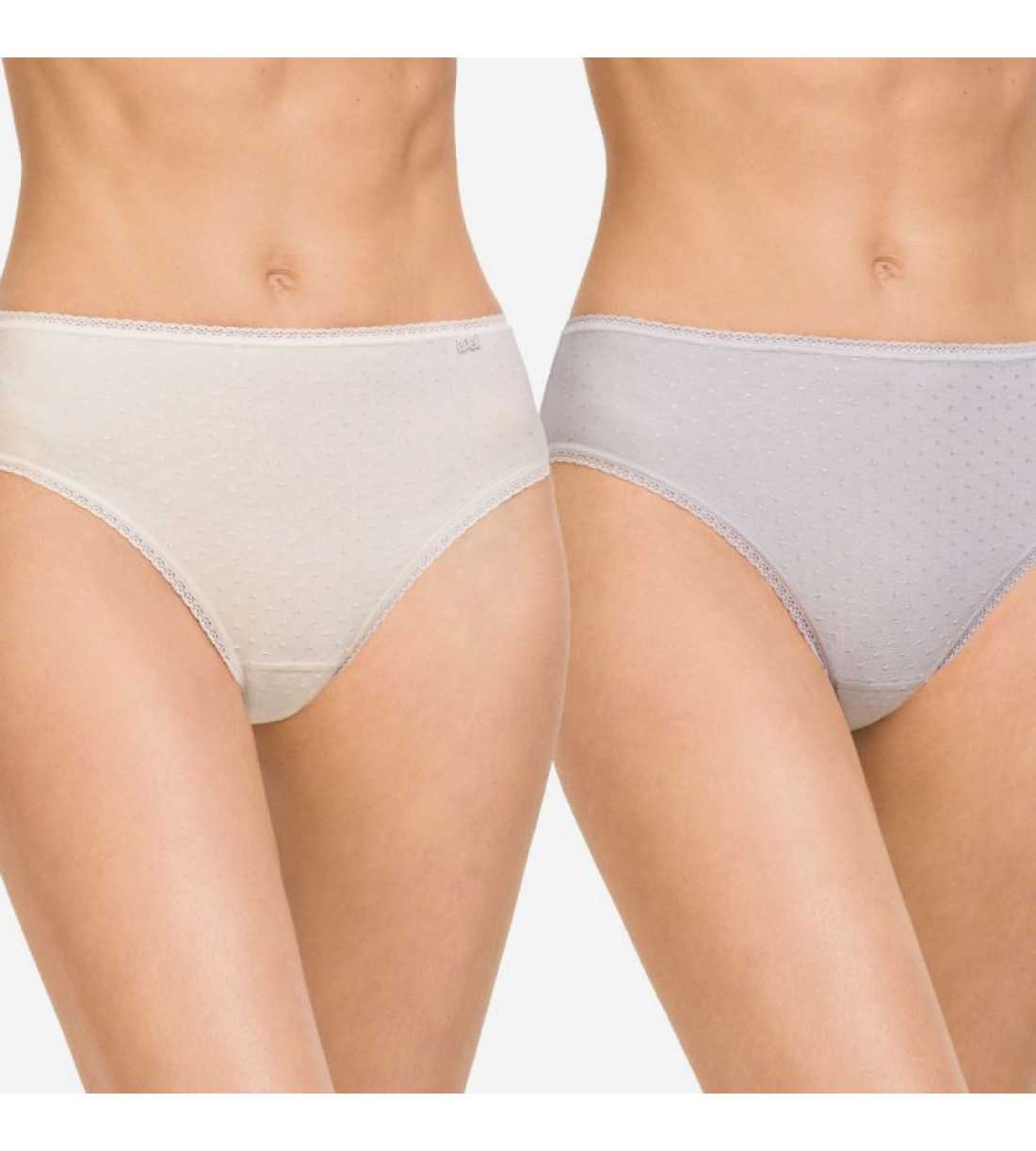 Pack de dos braguitas midi de algodón que combina un efecto brillo-mate con un plumeti discreto, creando la ilusión de un falso liso elegante y sofisticado.